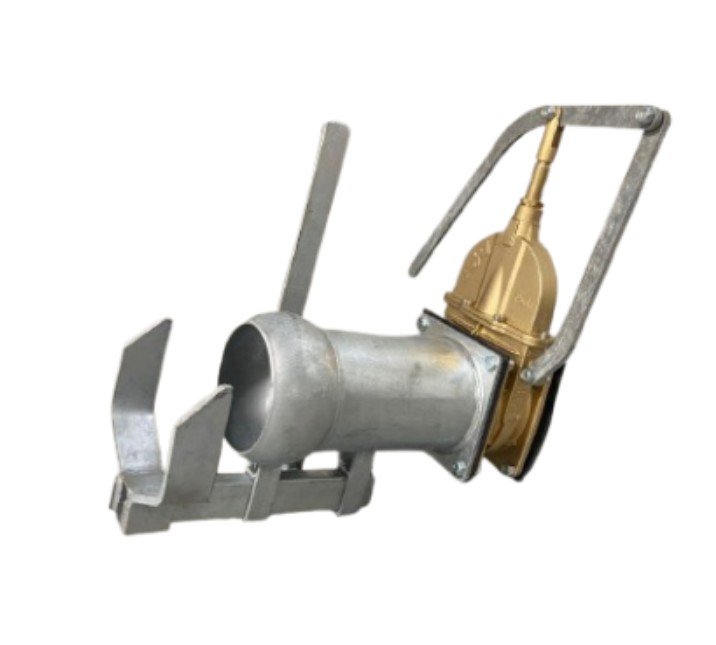 - This setup includes an operating handle and is designed for easy bolting onto equipment as an additional fill point.
